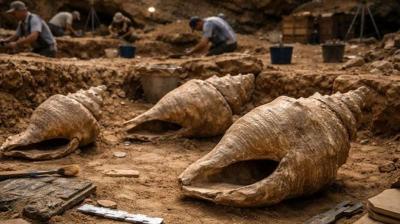 खुदाई में मिले 6000 साल पुराने विशाल समुद्री शंख