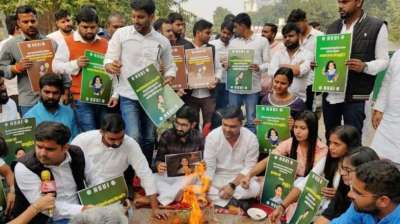NSUI का विरोध प्रदर्शन: नर्सिंग छात्राओं के समर्थन में सड़क पर उतरे कार्यकर्ता, बारिश में भी डटे रहे
