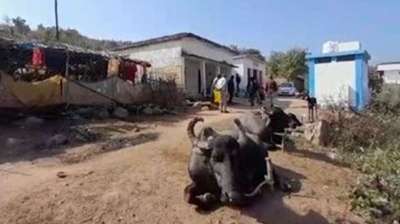 भैंसों के तबेले में बदला स्कूल भवन, बच्चों की पढ़ाई सड़क और मंदिर पर पहुंची