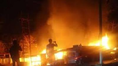 सब्जी मंडी में आग के बीच सिलिंडर ब्लास्ट, इलाके में मची भगदड़