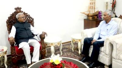 राज्यपाल बागडे से त्रिपुरा के राज्यपाल एन. इंद्रसेना रेड्डी की शिष्टाचार भेंट