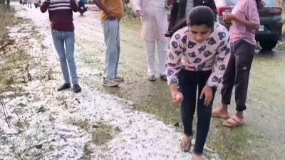 नीमच के खेतों में ओले गिरे, सफेद चादर बिछी, अफीम और अन्य फसलों की तबाही
