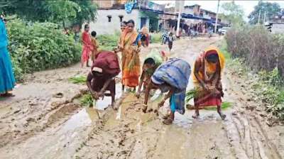 उमरिया की महिलाएं हुईं आगबबूला, सड़क की जगह बोया धान, वीडियो वायरल