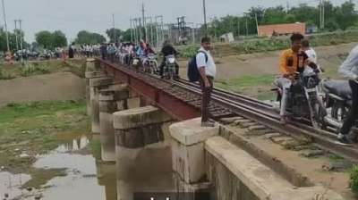 रेलवे ट्रैक बना राह, बाइक और पैदल चल पड़े लोग; जरा सी चूक बन सकती थी मौत का कारण