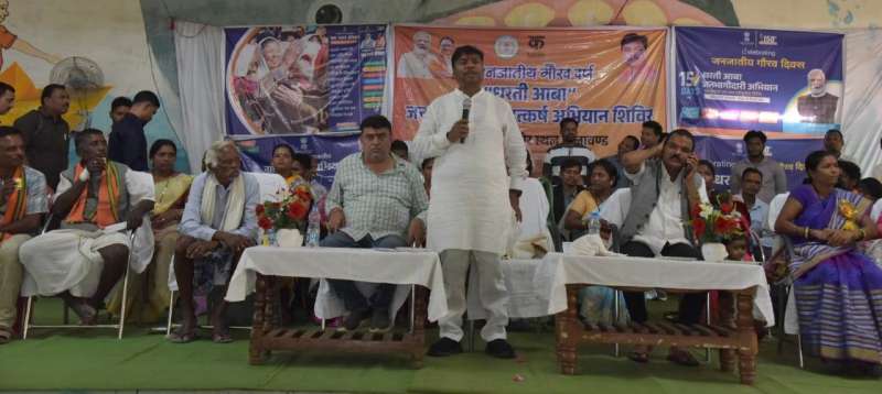 रायपुर : वन एवं जलवायु परिवर्तन मंत्री केदार कश्यप ने आज धरती आबा योजना के तहत आयोजित शिविर में स्वास्थ्य विभाग द्वारा 5 लोगों को आयुष्मान कार्ड और 5 को जन्म प्रमाण पत्र, कृषि विभाग अंतर्गत 5 किसानों को धान बीज, सहकारिता विभाग 6 किसानों को किसान क्रेडिट कार्ड, 6 विद्यार्थियों को जाति प्रमाण पत्र और ‘एक पेड़ मां के नाम‘ अभियान के तहत 300 ग्रामीणों को पौधे वितरित किए। वन मंत्री कश्यप आज कोण्डागांव जिले के ग्राम गोलावण्ड में आयोजित धरती आबा जनजातीय ग्राम उत्कर्ष अभियान के अंतर्गत विशेष शिविर में शामिल हुए। इस शिविर में आसपास के 16 गांवों के ग्रामीण बड़ी संख्या में सम्मिलित हुए। उन्होंने कहा कि धरती आबा अभियान के तहत जनजातीय समुदाय के लोगों को मुख्यधारा से जोड़ने की दिशा में एक महत्वपूर्ण प्रयास साबित हो रहा है।