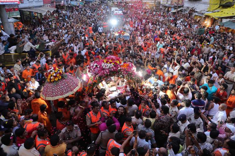 मंदिर के मुख्य द्वार पर सशस्त्र पुलिस बल के जवानों द्वारा भगवान को सलामी गॉर्ड ऑफ ऑनर दिया जाएगा. भगवा ध्वज, शंखनाद, तोप की आवाज, सेवकों का उद्घोष, घुड़सवार, नाचते-गाते भक्त, रंगोली बनाते कलाकार, 9 भजन मंडली, डमरू वादक, फूलो की वर्षा करते भक्त, भूत, नंदी, देवी देवताओं के अलग अलग भेष धारण कर सवारी में शामिल भक्त