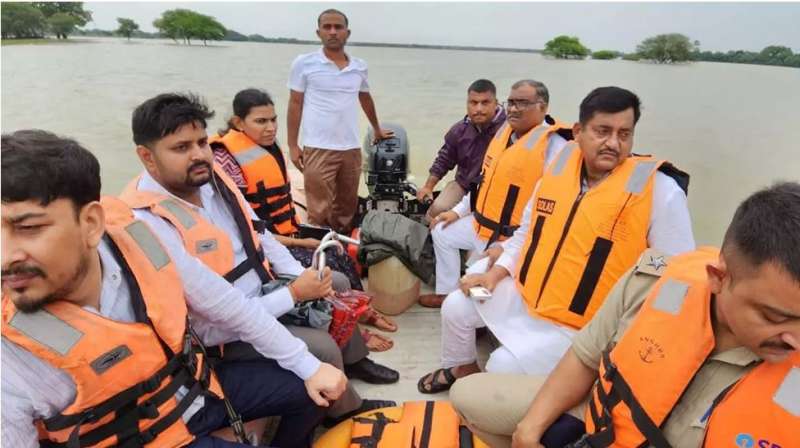 बाढ़ग्रस्त इलाकों में मंत्री का जमीनी निरीक्षण, DM-SP भी दौड़ते रहे साथ