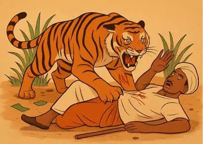 खूंखार टाइगर का जंगल में तांडव, शिकार की जगह किसान दिखते ही हमला – ऐसे बचा लिया खुद को मौत के जबड़ों से