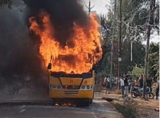 इंदौर में चलती स्कूल बस अचानक बनी आग का गोला, गनीमत रही कि सभी बच्चे सुरक्षित बाहर निकाल लिए गए
