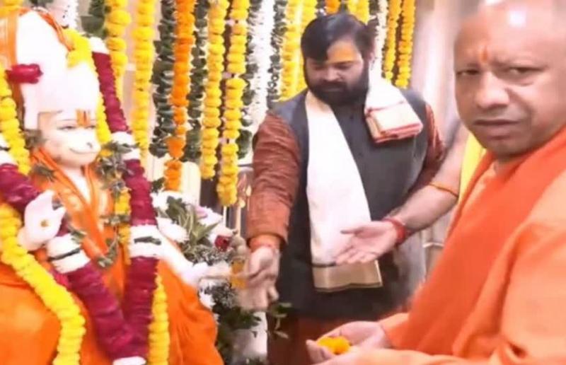 योगी आदित्यनाथ शहर उत्तरी के भाजपा विधायक हर्षवर्धन के आवास रामबाग में नवनिर्मित हनुमान मंदिर की मूर्ति की प्राण प्रतिष्ठा में हिस्सा लिया।