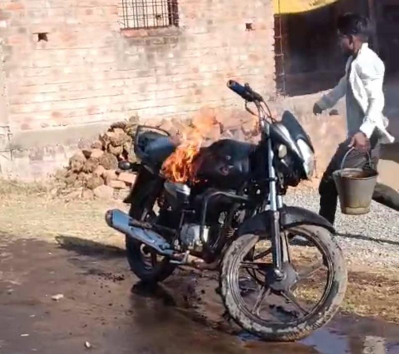 पुरानी रंजिश में बाइक को किया आग के हवाले