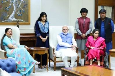 वसुंधरा राजे अपने परिवार के साथ पहुंचीं प्रधानमंत्री नरेंद्र मोदी से मिलने