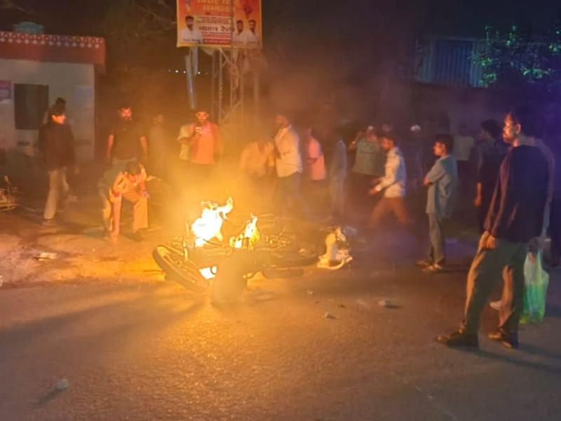 प्रत्यक्षदर्शियों के अनुसार, विवाद बढ़ने पर ठेका संचालक पक्ष ने अपने अन्य लोगों को भी मौके पर बुला लिया, जिससे माहौल और तनावपूर्ण हो गया। पुलिस के पहुंचने के बावजूद हालात बेकाबू हो गए और उपद्रवियों ने बाइक में आग लगा दी।
