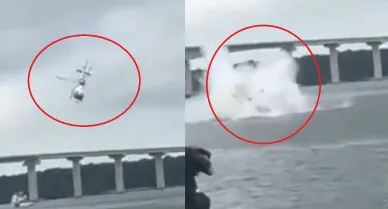 गश्त के दौरान हादसा: पुलिस का हेलिकॉप्टर नदी में गिरा