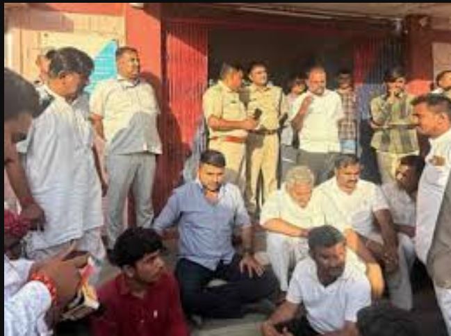 प्रदर्शन के दौरान विधायक भाटी और पुलिस आमने-सामने