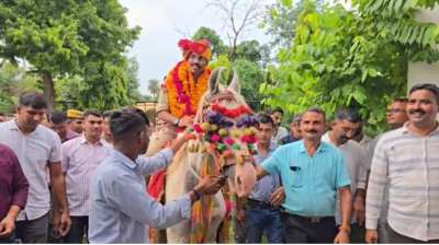 नागौर एसपी नारायण टोगस को घोड़ी पर बैठाकर दी गई विदाई, वीडियो वायरल